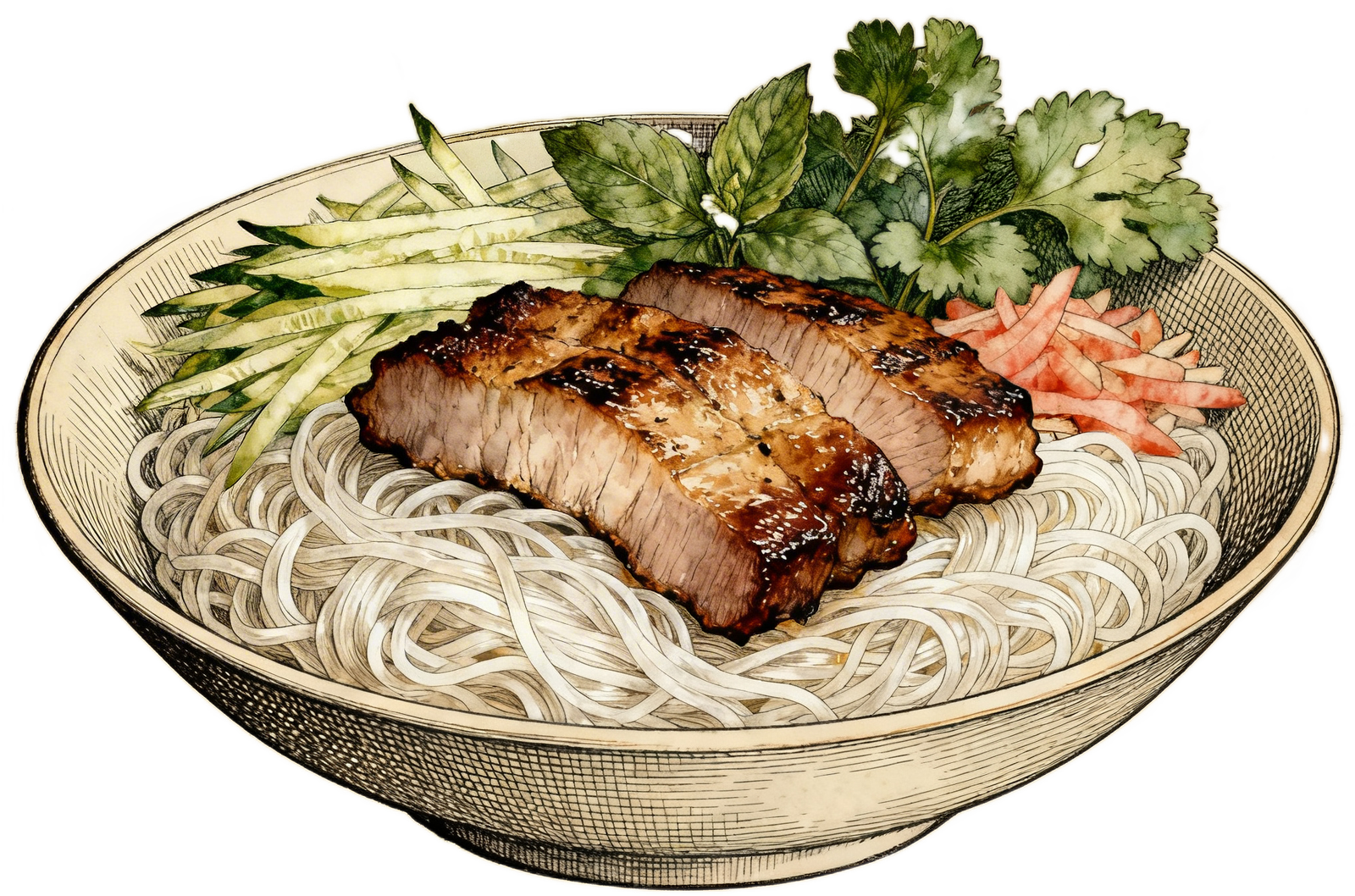 All Bo bun are served with rice vermicelli and two pieces of nems