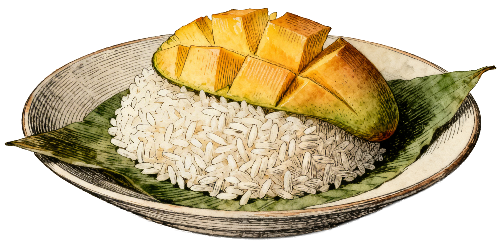 Riz gluant à la mangue fraîche, sauce coco et graines de sésame